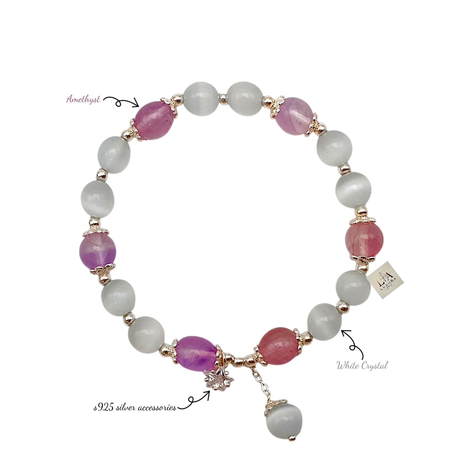This beautiful bracelet combines White Crystal and Amethyst beads with elegant S925 silver accents. Designed for holistic energy support, this multi-stone bracelet helps harmonize your mind, body, and spirit while adding a stylish touch to any outfit.