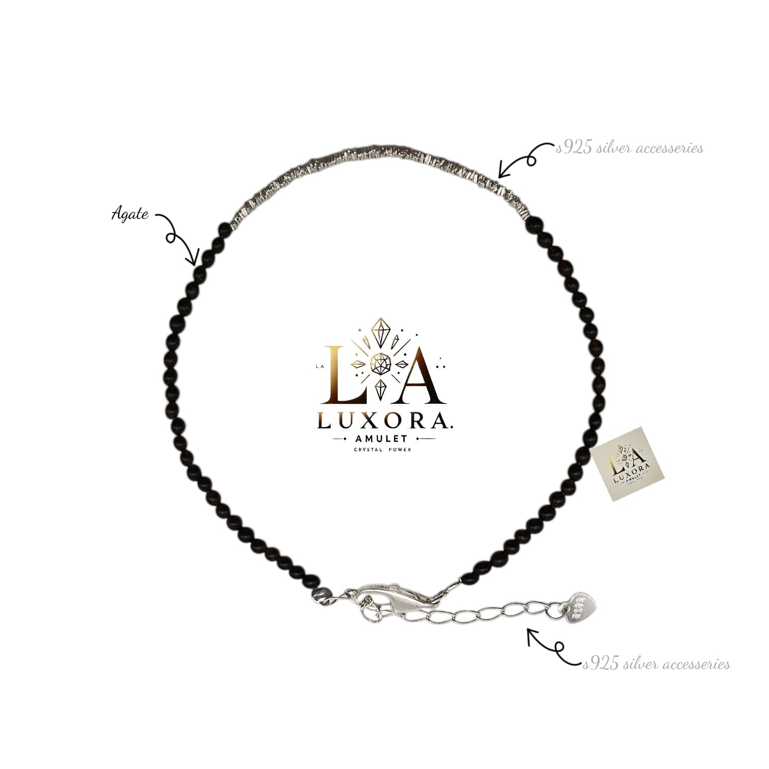 This elegant bracelet features powerful Black Agate beads paired with refined S925 Silver accents. Known for its protective and grounding properties, Black Agate supports emotional stability, mental clarity, and spiritual strength, making it a versatile accessory for daily wear.