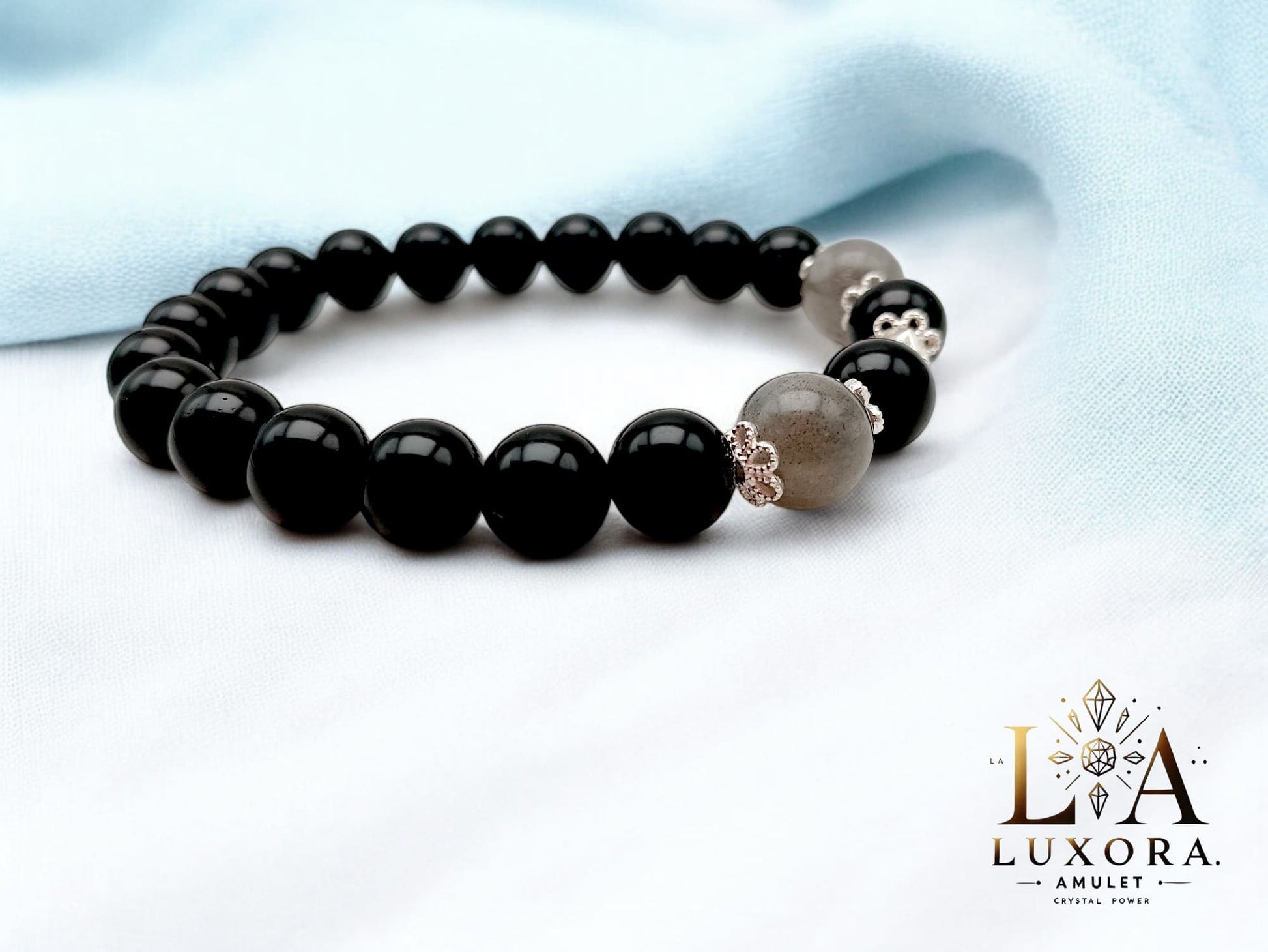 This Black Obsidian Bracelet features strong Black Obsidian stones as the main focus, accented with luminous Labradorite beads and elegant S925 silver beads. Designed to shield against negative energy, promote clarity, and support emotional balance, this bracelets obsidian piece combines protection, style, and refined energy amplification.