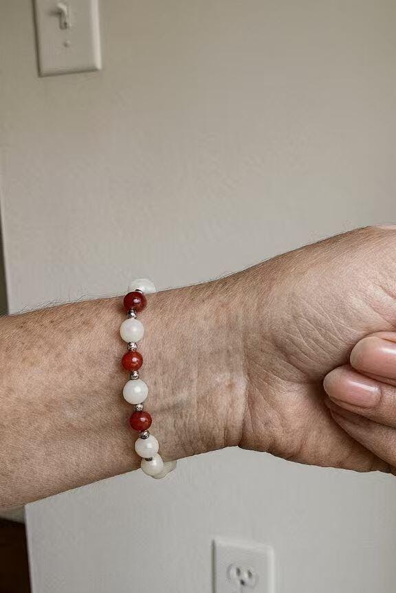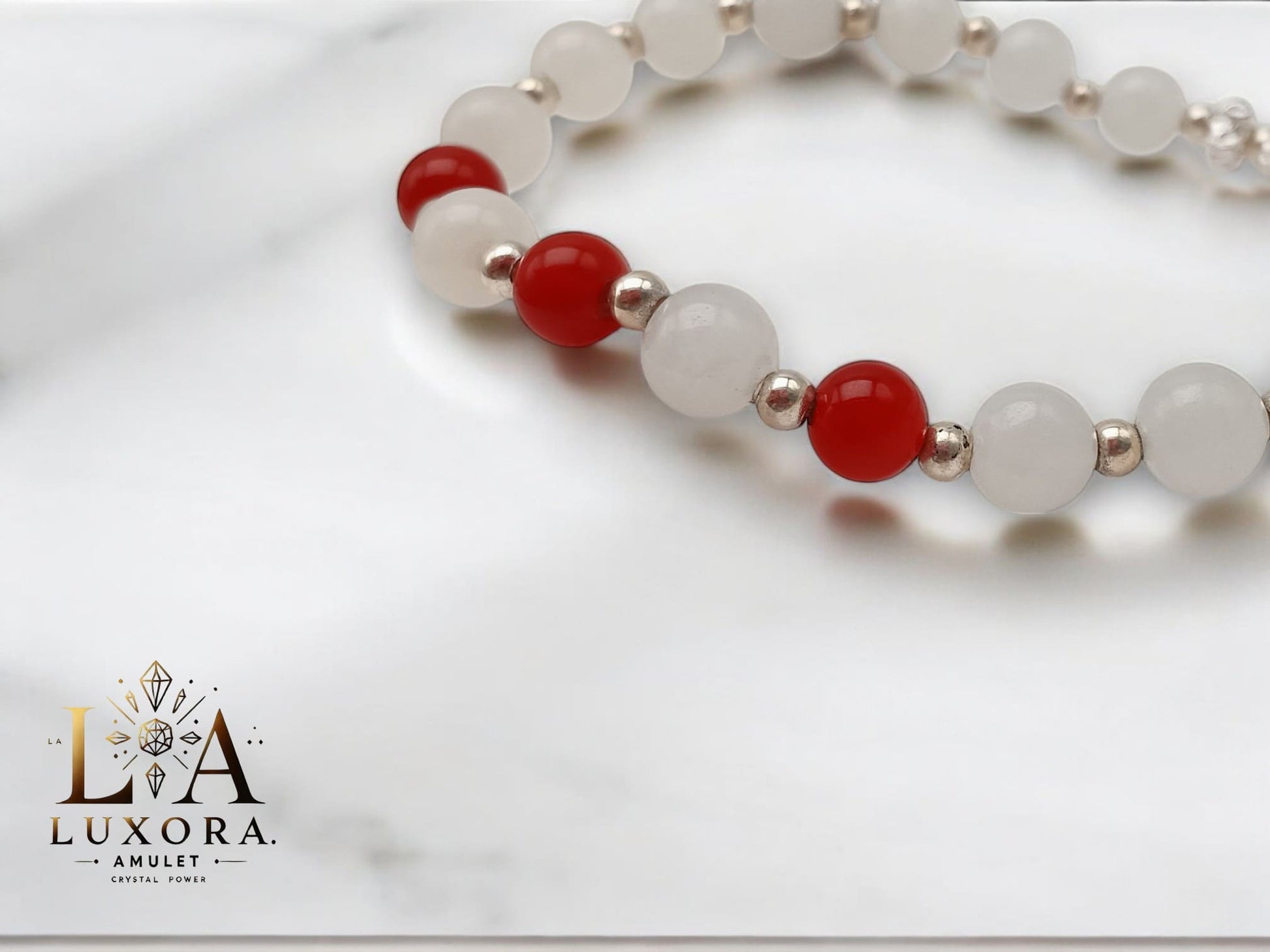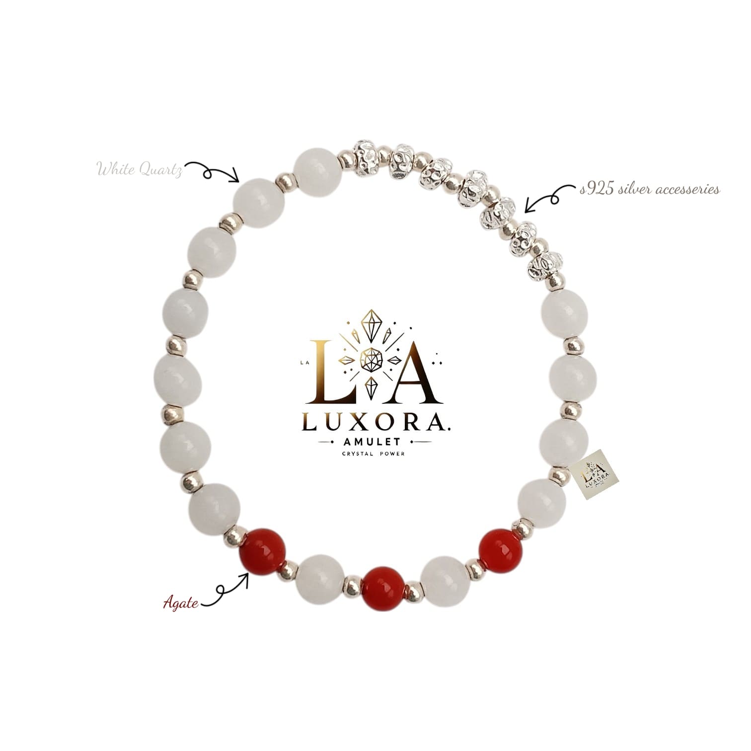 Elevate your mind, spirit, and personal energy with this White Crystal & Red Agate Bracelet, designed to harmonize and inspire.